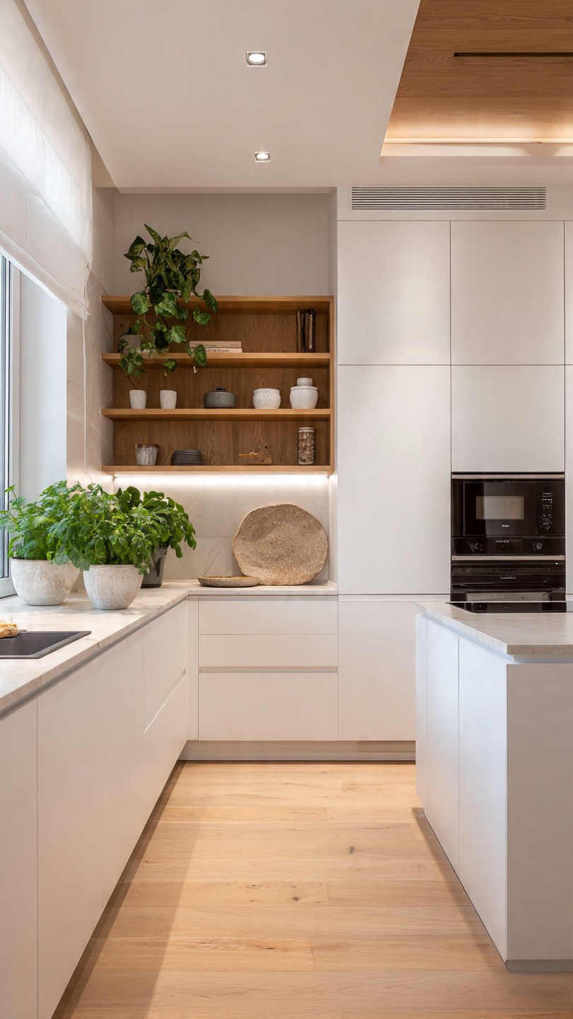 Bên cạnh đó, xu hướng sử dụng các giải pháp lưu trữ thông minh ngày càng phổ biến. Các hệ tủ kéo đa năng, góc tủ xoay, kệ nâng hạ hay hệ thống phân chia ngăn linh hoạt giúp tối ưu hóa diện tích lưu trữ, đặc biệt phù hợp với các căn hộ có diện tích nhỏ. Việc tích hợp các thiết bị bếp âm tủ cũng là xu hướng nổi bật, giúp không gian trở nên gọn gàng và đồng bộ hơn.