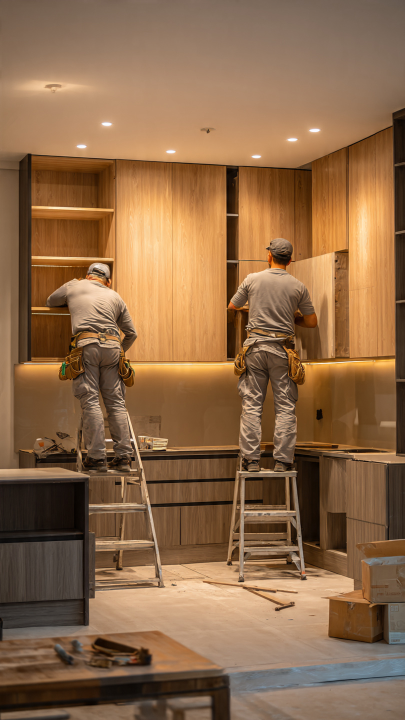 Khi bản thiết kế được duyệt, xưởng sẽ tiến hành sản xuất các bộ phận của tủ bếp bằng máy móc hiện đại, đảm bảo độ chính xác cao trong từng chi tiết. Sau khi hoàn thiện, sản phẩm sẽ được vận chuyển và lắp đặt trực tiếp tại công trình. Đội ngũ thi công sẽ tiến hành căn chỉnh, cố định và kiểm tra toàn bộ hệ thống trước khi bàn giao, đảm bảo tủ bếp hoạt động ổn định và an toàn trong quá trình sử dụng.