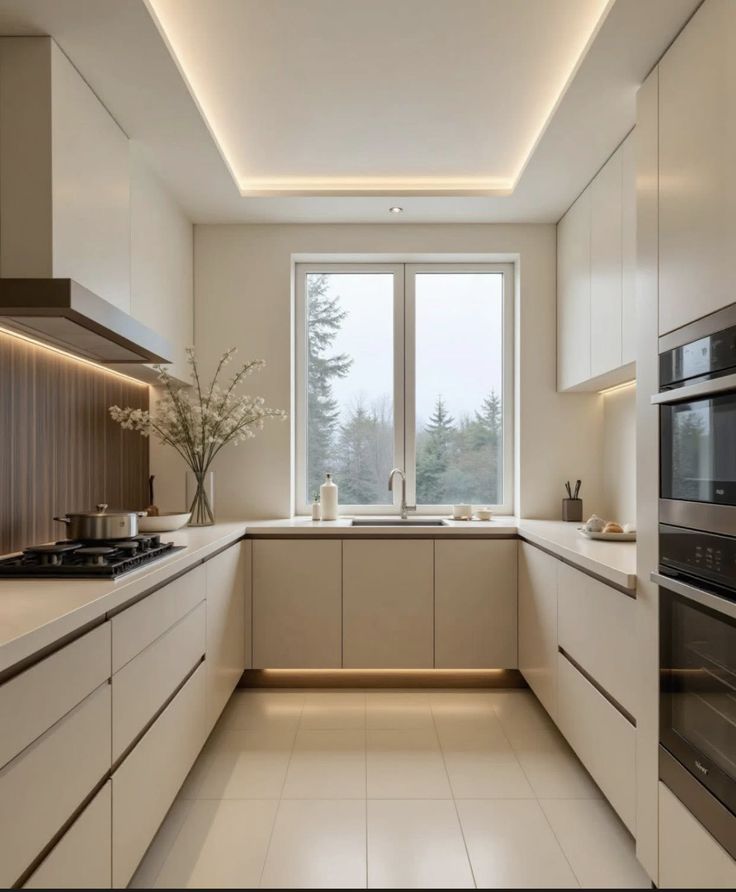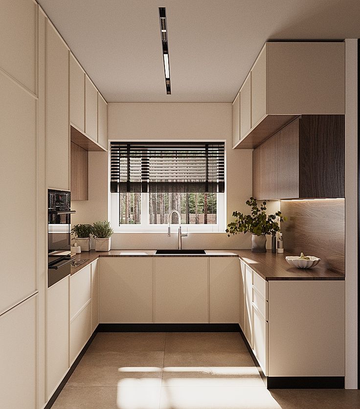 Năm 2026, các mẫu tủ bếp chữ U tập trung vào phong cách tối giản, sử dụng gam màu trung tính như trắng, xám, be hoặc vân gỗ tự nhiên. Thiết kế ưu tiên bề mặt phẳng, hạn chế chi tiết rườm rà để tạo cảm giác rộng rãi.
