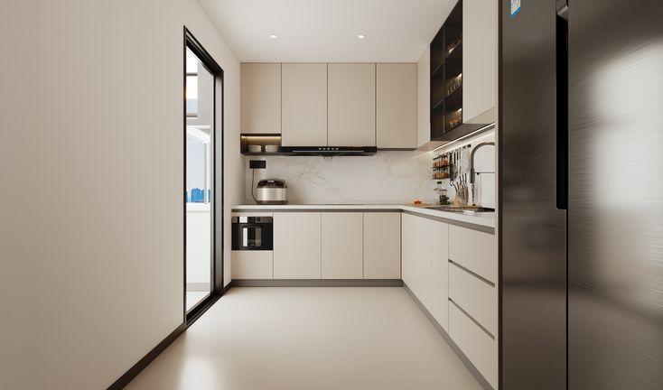 Thiết kế màu sắc của tủ bếp chung cư cũng hướng đến sự hài hòa với tổng thể không gian. Các gam màu trung tính như trắng, xám, be hoặc vân gỗ tự nhiên thường được ưu tiên để tạo cảm giác rộng rãi, thoáng đãng và hiện đại.
