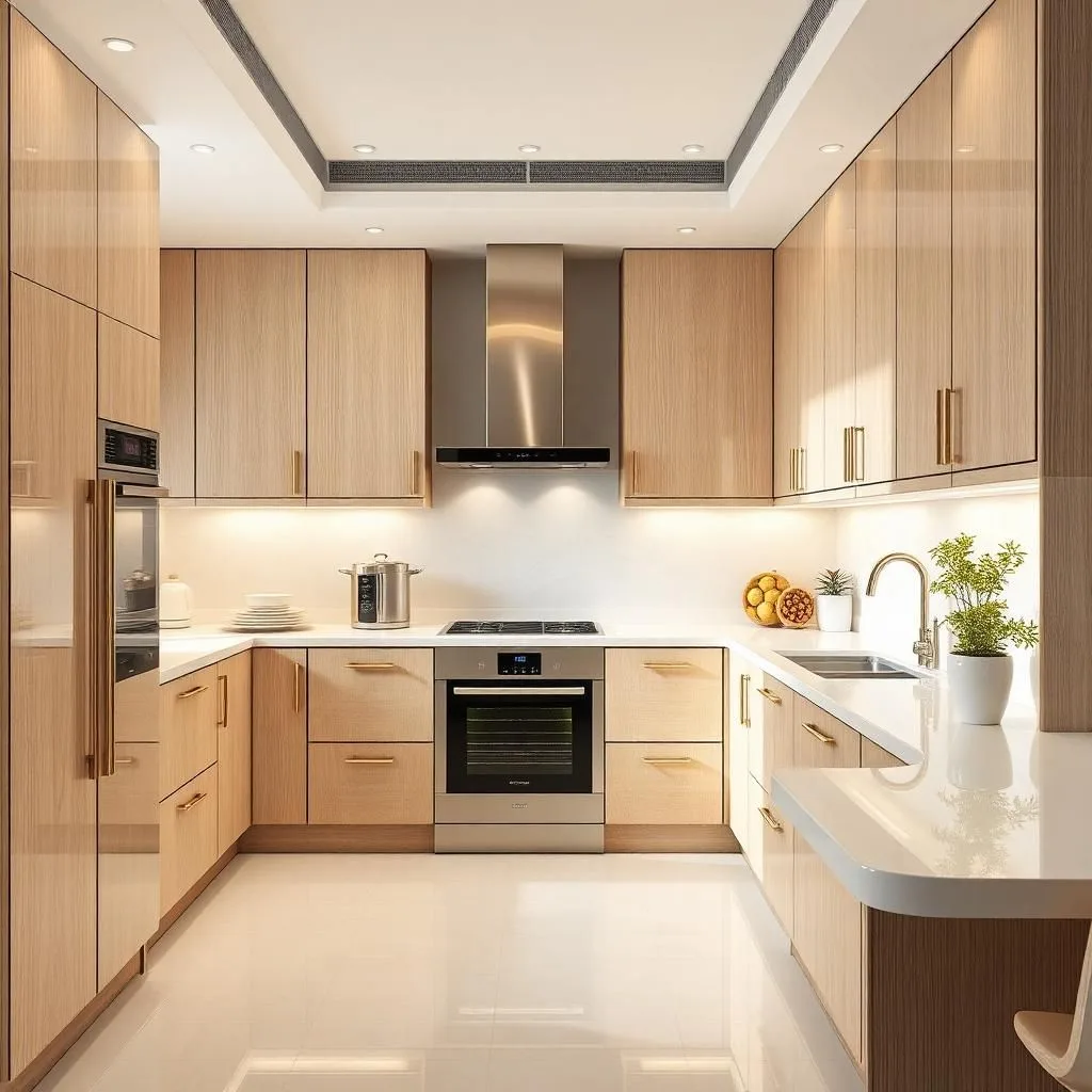 Tủ bếp thông minh: tích hợp phụ kiện đa năng, hệ thống đèn cảm biến.