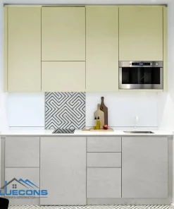 - Kiểu dáng hiện đại: Với sự kết hợp gỗ MDF thiết kế kiểu dáng đơn sang trọng. Tủ bếp nhiều ngăn sử dụng hệ thống tip on đóng mở tự động. Thiết kế có các ngăn kích thước khác nhau.