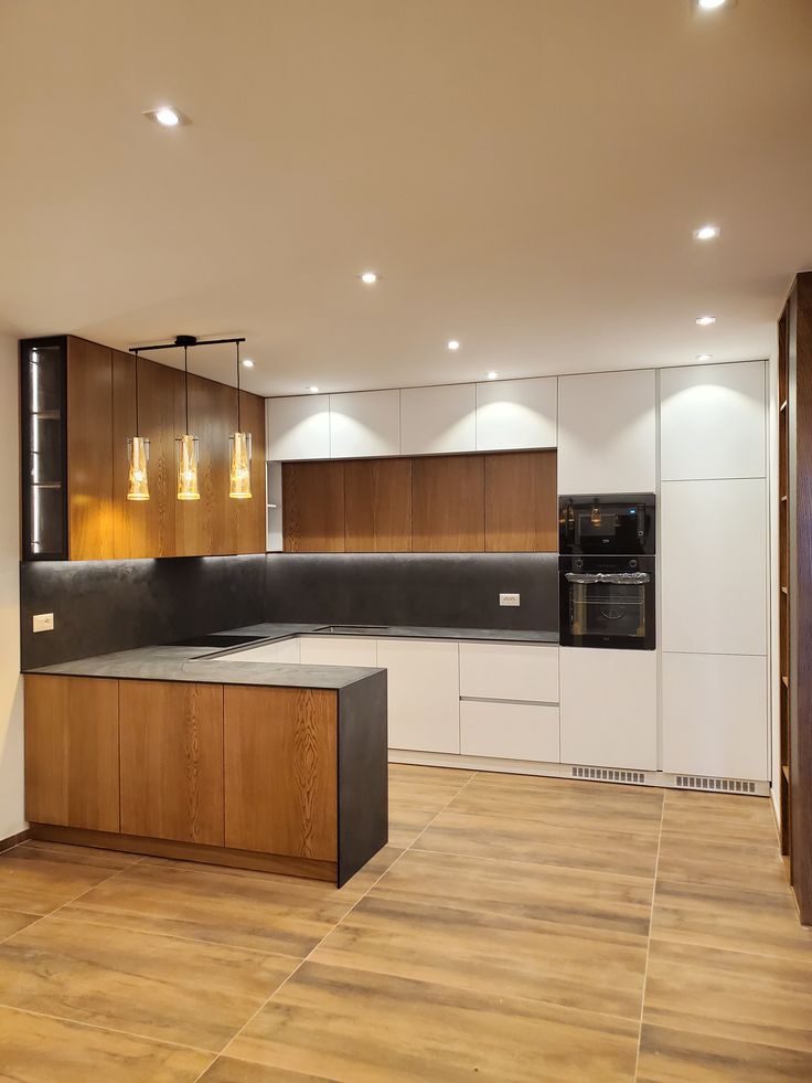 Đối với những căn bếp có diện tích lớn, tủ bếp chữ U mang lại sự tiện nghi tối đa khi bố trí nhiều khu vực chức năng riêng biệt. Kiểu dáng này giúp người dùng dễ dàng thao tác và tăng hiệu quả sử dụng không gian. Ngoài ra, tủ bếp song song thường được sử dụng trong các thiết kế bếp dài, tạo lối đi ở giữa và phân chia khu vực rõ ràng.
