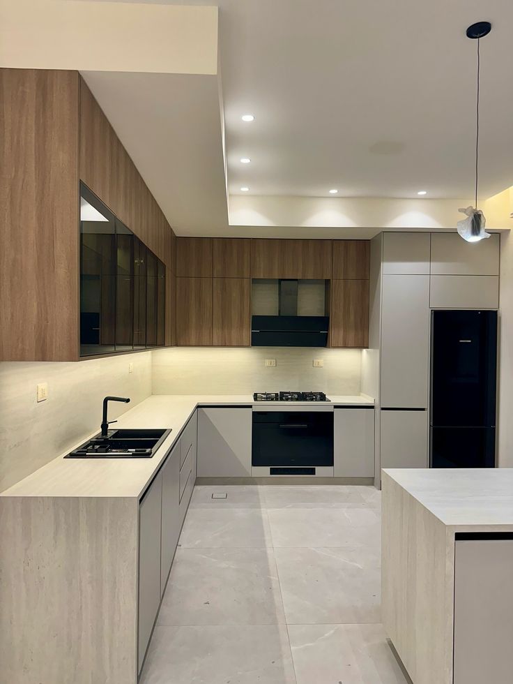 Một trong những xu hướng nổi bật là thiết kế tủ bếp tối giản với đường nét gọn gàng, màu sắc trung tính như trắng, xám, be hoặc vân gỗ tự nhiên. Kiểu dáng này không chỉ mang lại cảm giác rộng rãi mà còn dễ dàng kết hợp với nhiều phong cách nội thất khác nhau.
