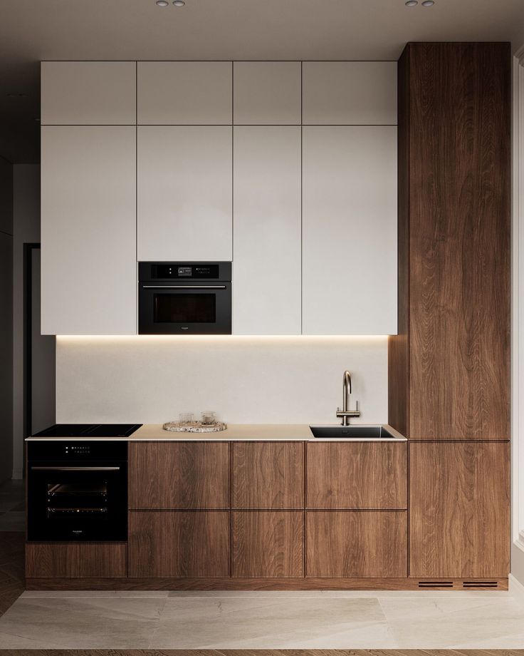 Thiết kế tủ bếp chữ I là kiểu bố trí toàn bộ hệ tủ bếp, bao gồm tủ trên, tủ dưới, bếp nấu, chậu rửa và các thiết bị khác nằm trên cùng một đường thẳng. Đây là lựa chọn lý tưởng cho những không gian bếp nhỏ hoặc có chiều ngang hạn chế.