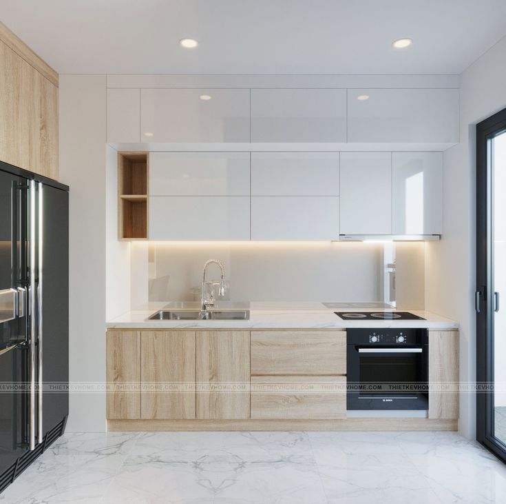 Ngoài ra, xu hướng thiết kế tủ bếp chữ I không tủ trên cũng đang được nhiều gia đình trẻ lựa chọn. Kiểu thiết kế này tạo cảm giác thông thoáng, nhẹ nhàng và mang phong cách hiện đại tối giản, đặc biệt phù hợp với không gian nhỏ.