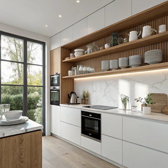 1. Xu hướng tủ bếp có kệ trang trí trong không gian sống hiện đại