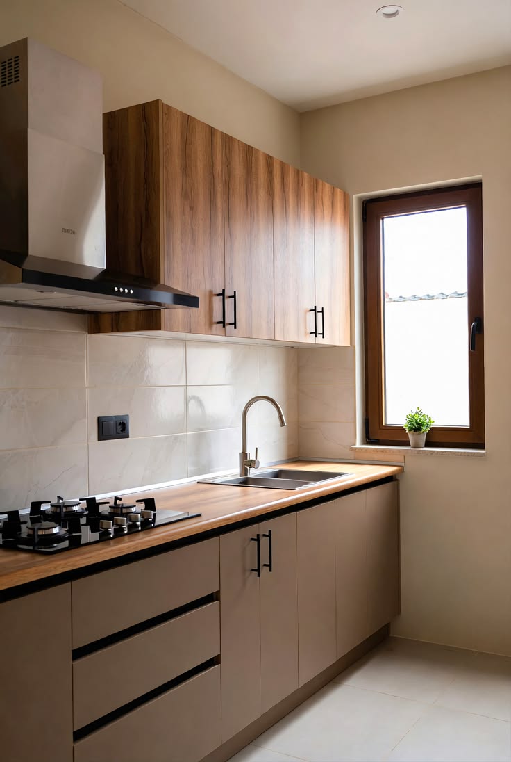 Tủ bếp chữ I là lựa chọn lý tưởng cho căn hộ nhỏ, giúp tiết kiệm diện tích và tạo sự thông thoáng. Thiết kế đơn giản nhưng vẫn đầy đủ công năng, phù hợp với gia đình ít người.