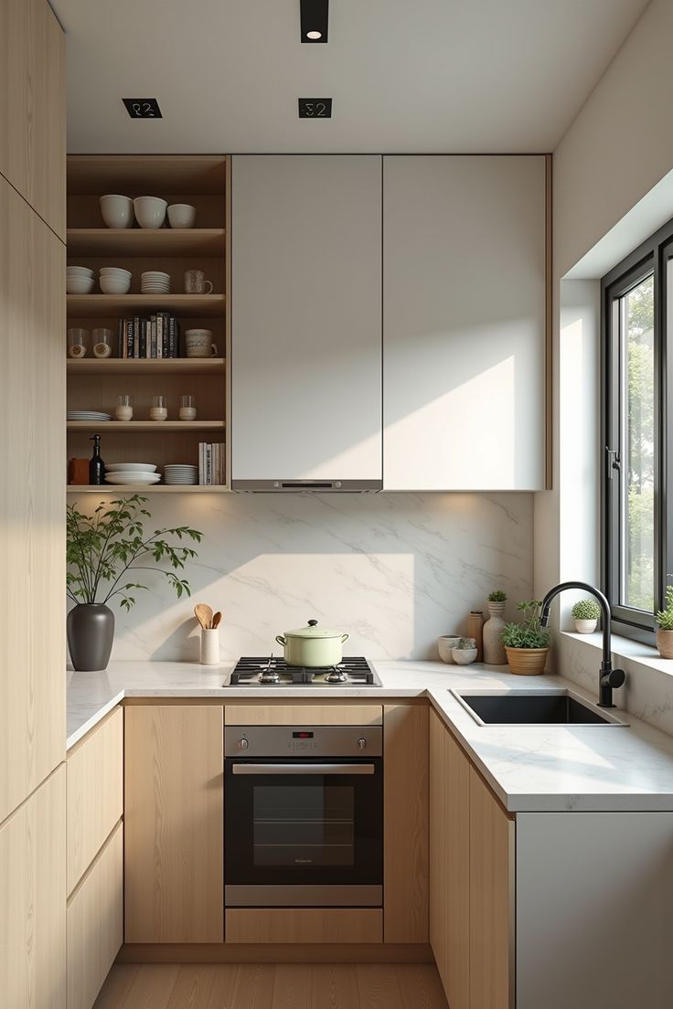 Tủ bếp chữ L cũng được nhiều gia đình lựa chọn vì tận dụng được góc tường, tạo không gian nấu nướng rộng rãi hơn. Đây là giải pháp tối ưu cho nhà nhỏ nhưng vẫn muốn có đầy đủ khu vực chức năng như bồn rửa, bếp nấu và khu sơ chế.