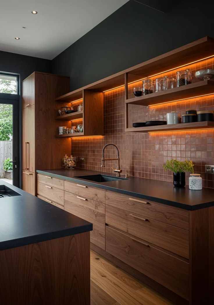 4. Ứng dụng tủ bếp gỗ óc chó trong không gian sống hiện đại