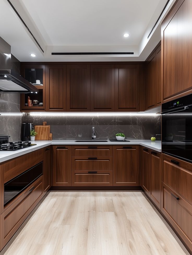 4. Ứng dụng tủ bếp gỗ óc chó trong không gian sống hiện đại