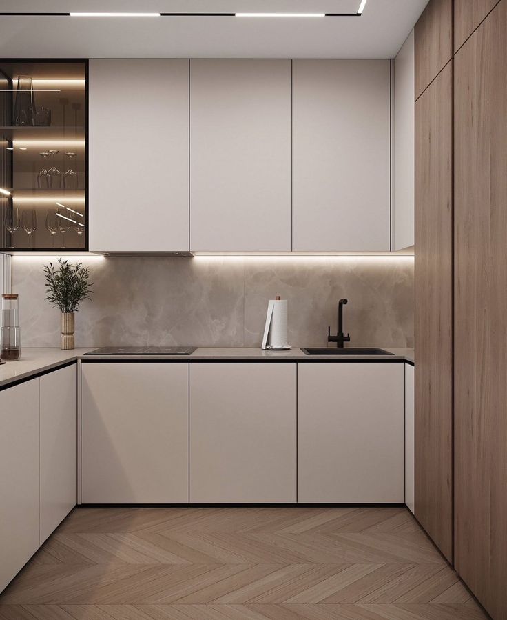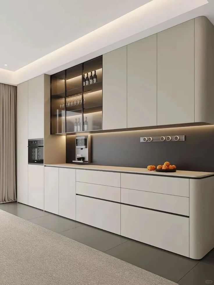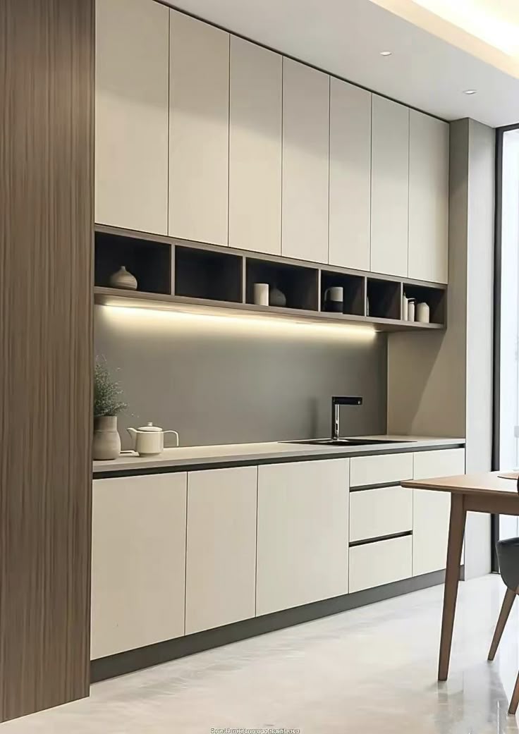 Tủ bếp hiện đại đơn giản thường được thiết kế dựa trên nguyên tắc tối giản hóa chi tiết nhưng tối đa hóa công năng. Các đường nét thẳng, bề mặt phẳng và màu sắc trung tính như trắng, xám, be hoặc vân gỗ nhẹ là những yếu tố đặc trưng. Kiểu thiết kế này giúp không gian bếp trở nên rộng rãi, thoáng đãng và dễ dàng kết hợp với nhiều phong cách nội thất khác nhau.