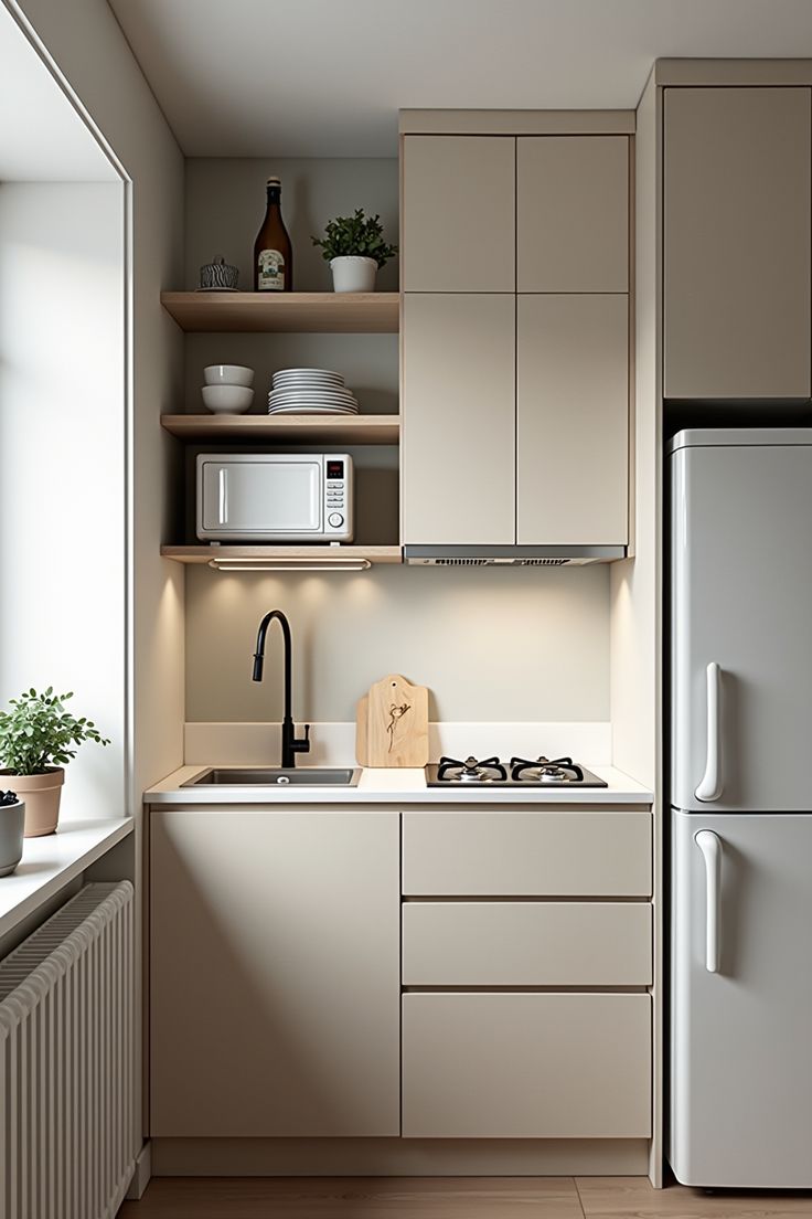 Một điểm đáng chú ý khác là sự kết hợp giữa tủ bếp mini và các thiết bị nhà bếp thông minh. Những thiết bị nhỏ gọn, đa năng giúp tiết kiệm diện tích và tăng tính tiện nghi cho không gian bếp. Khi được kết hợp hợp lý, tủ bếp mini không chỉ là nơi lưu trữ mà còn trở thành trung tâm sinh hoạt tiện lợi trong gia đình.