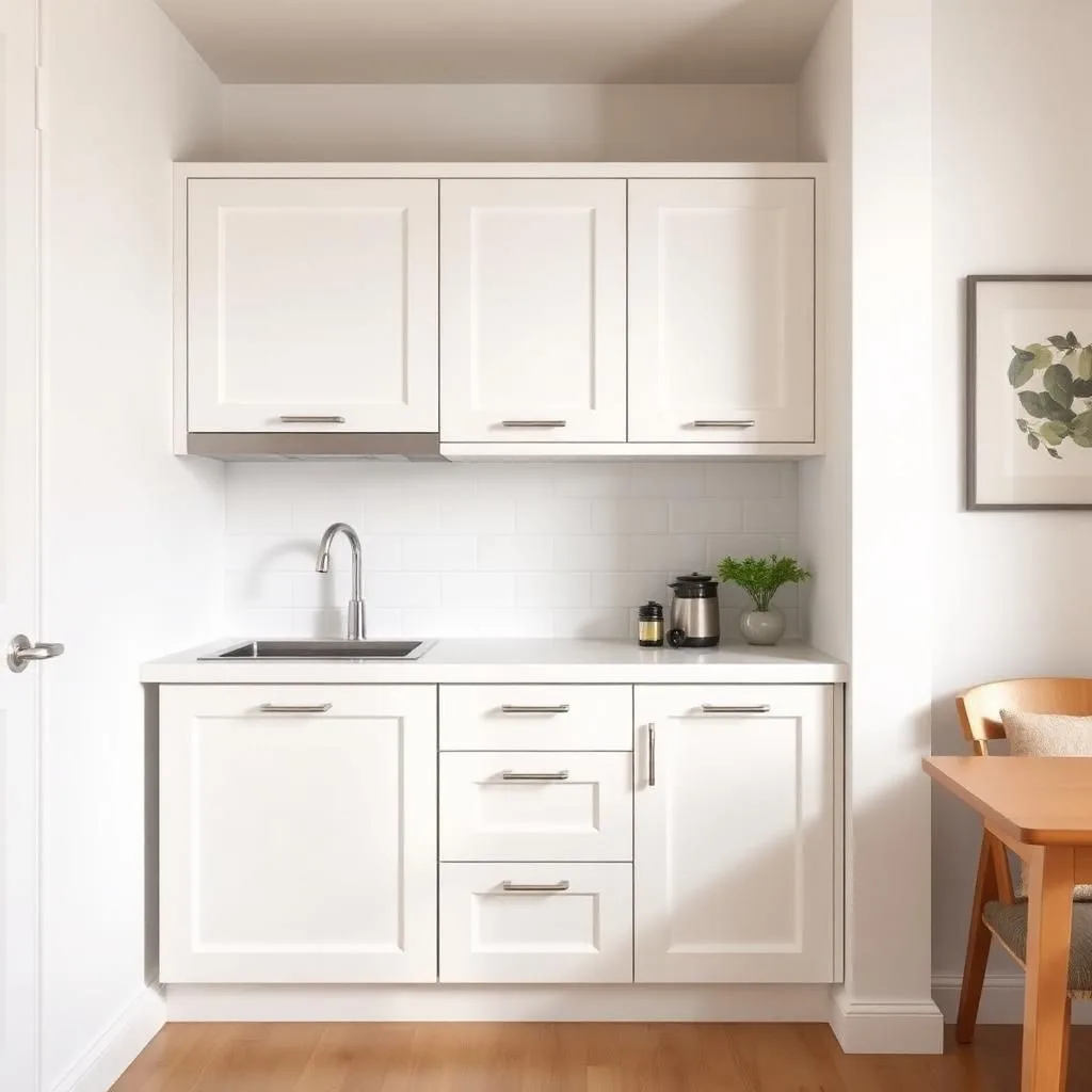 • Tủ bếp nhỏ → dùng ánh sáng trắng, đèn LED hắt để tạo sự rộng rãi.