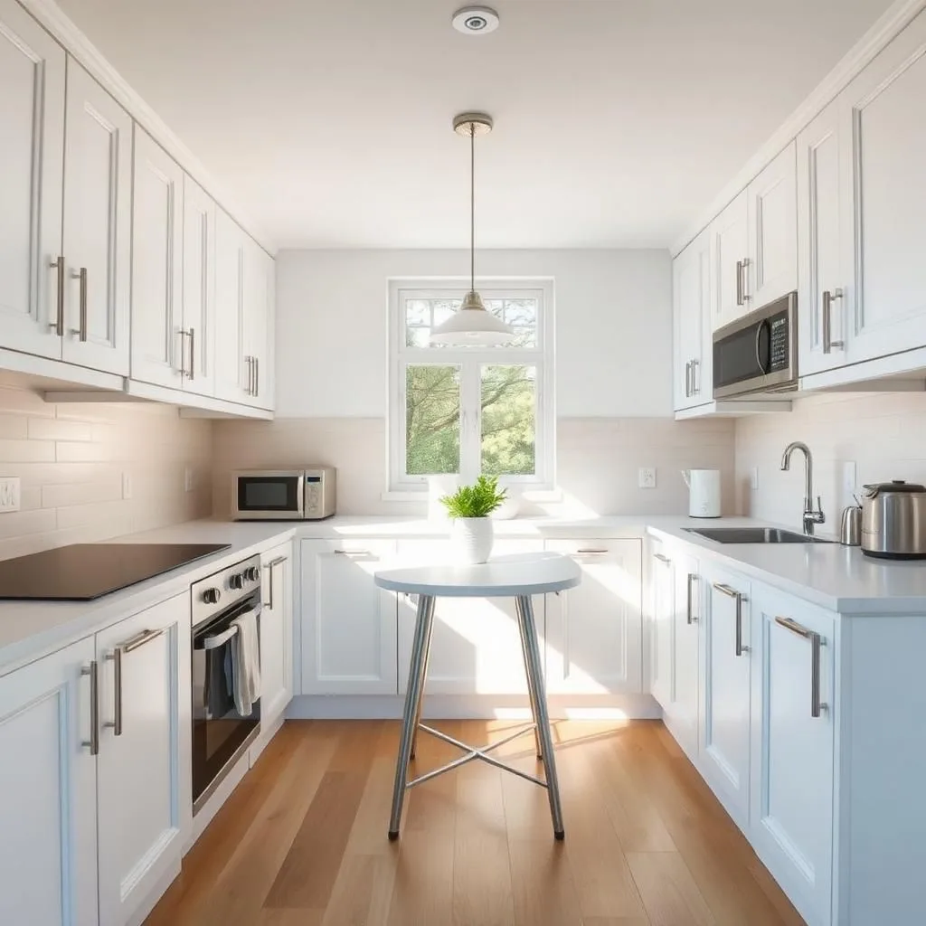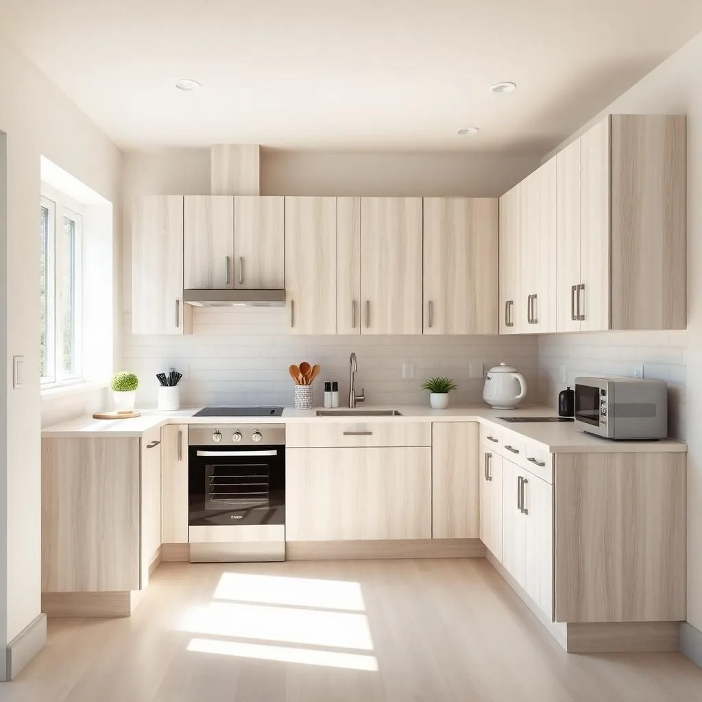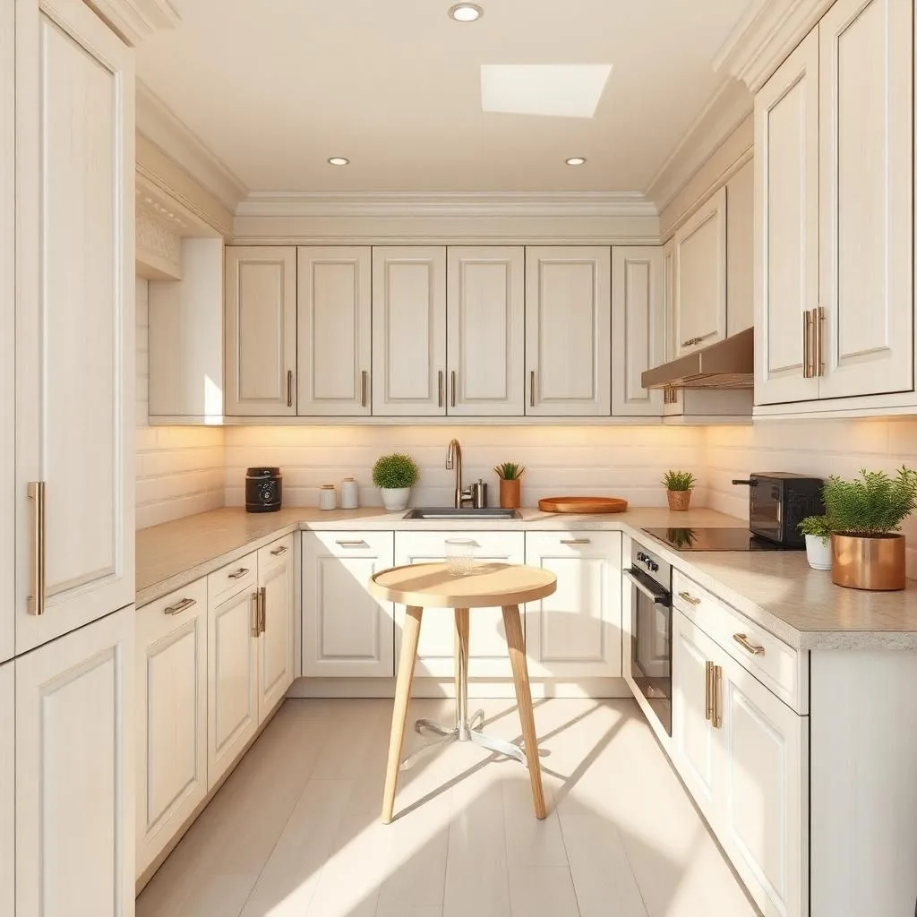 • Tủ bếp nhỏ → dùng ánh sáng trắng, đèn LED hắt để tạo sự rộng rãi.